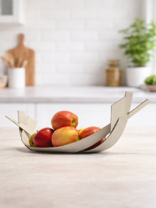Add a contemporary artistic touch to your home with this Modern Sculptural Wooden Fruit Bowl, designed with clean lines and a unique folded form that blends function with modern design. The open structure cradles fruits beautifully while allowing air circulation, helping keep fruits fresh for longer.