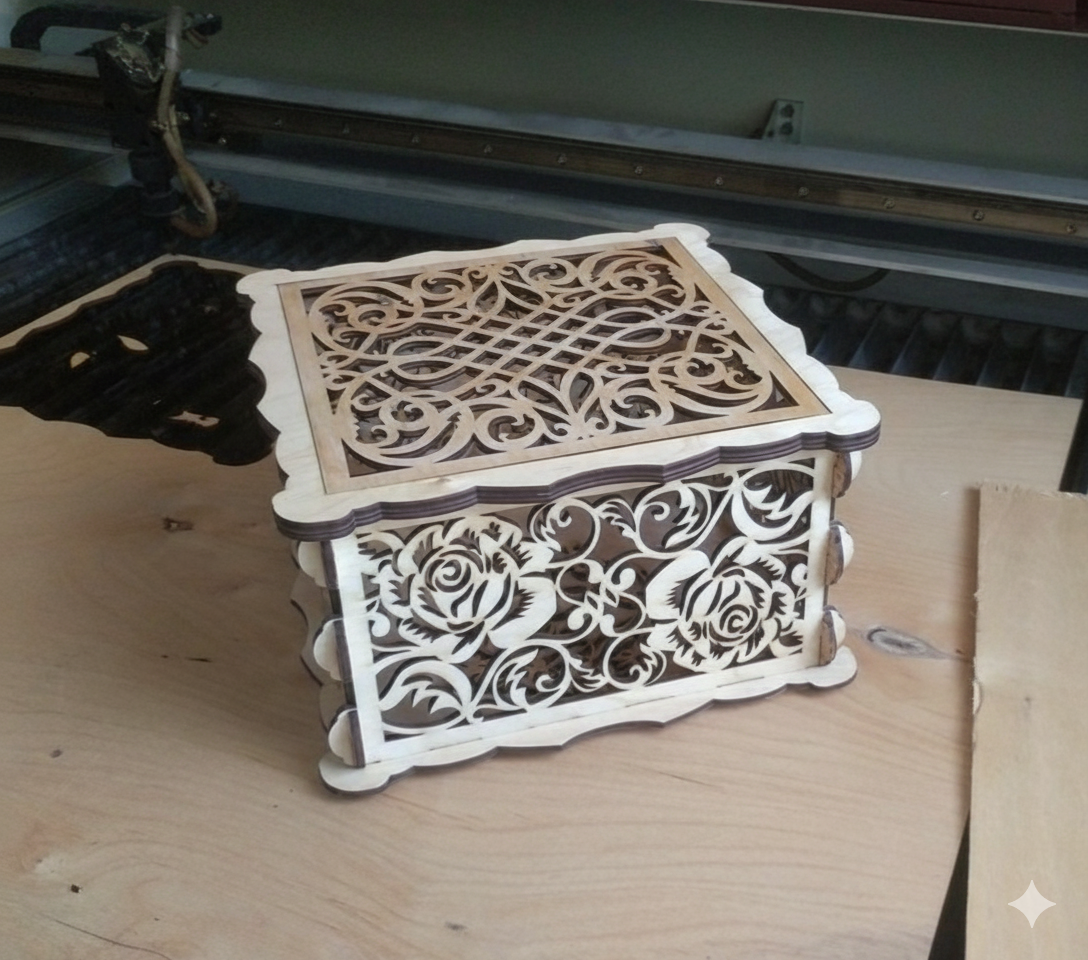 Premium Handcrafted Laser Cut Wooden Decorative Storage Box