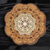 The layered wooden design creates depth and dimension, while the central LED light emits a soft, warm glow that enhances the beauty of the cutwork. When lit, it casts a soothing ambient light, making it perfect for living rooms, bedrooms, hallways, pooja rooms, cafés, and boutique interiors.